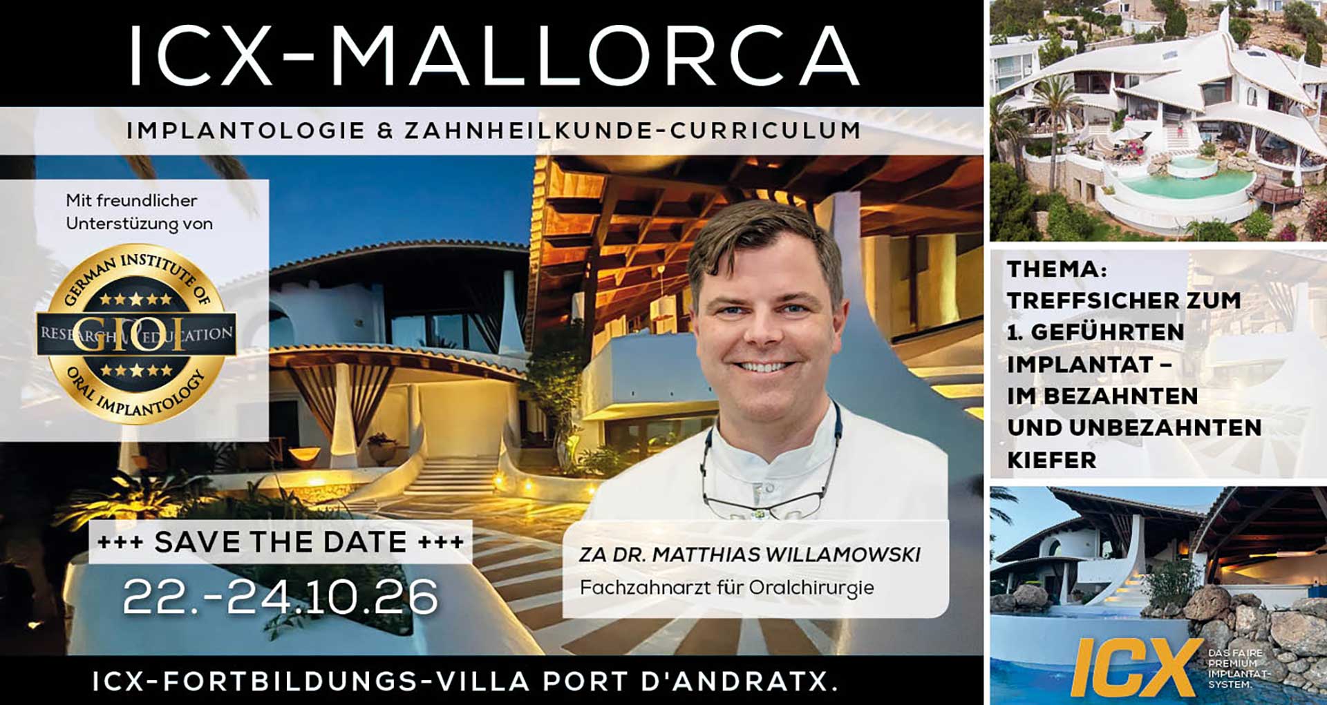 HervorgehobenIMPLANTOLOGIE & ZAHNHEILKUNDE-CURRICULUM ‘26, Mallorca – Referent: ZA Dr. Matthias Willamowski