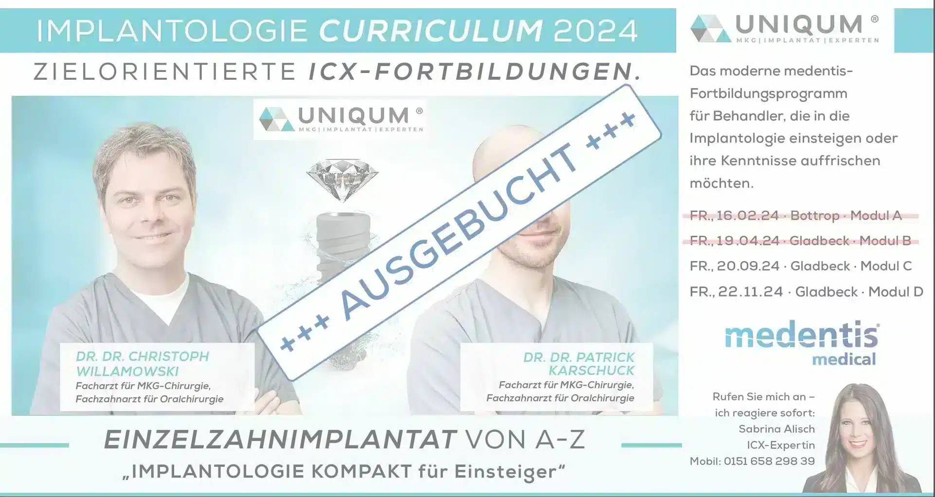 IMPLANTOLOGIE CURRICULUM – EINZELZAHNIMPLANTAT VON A-Z – MODUL A, Bottrop