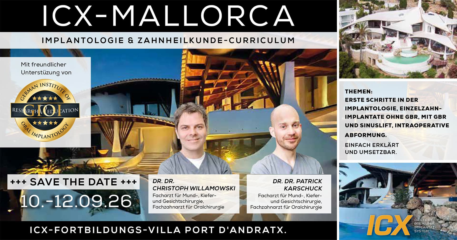 IMPLANTOLOGIE & ZAHNHEILKUNDE-CURRICULUM ‘26, Mallorca – Ref.: Dr. Dr. Christoph Willamowski, Dr. Dr. Patrick Karschuck
